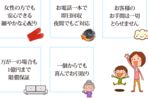 快適生活のうれしいところは、即日対応してくれるところです。電話一本で、すぐに不用品を回収しに駆けつけてきてくれます。そのため、急な引っ越しの際にも快適生活は頼りになります。